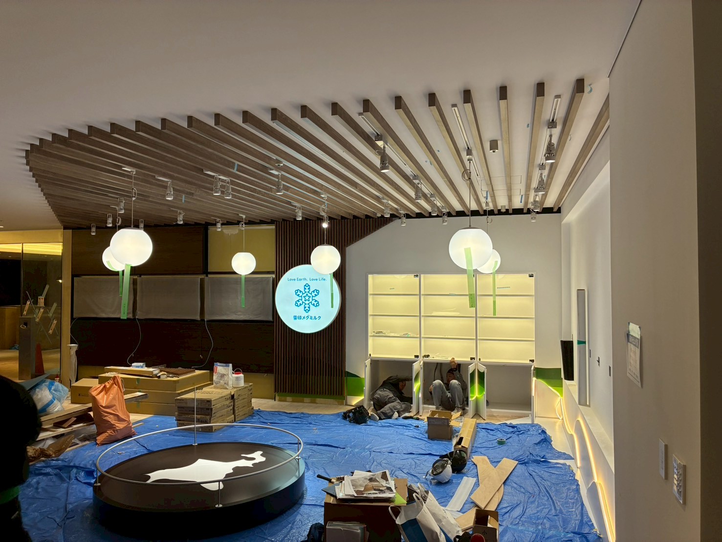 展示スペースの新設工事(内装工事・什器製作と設置)