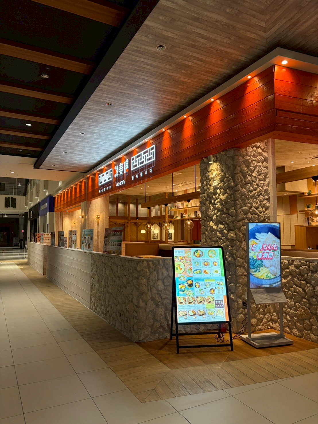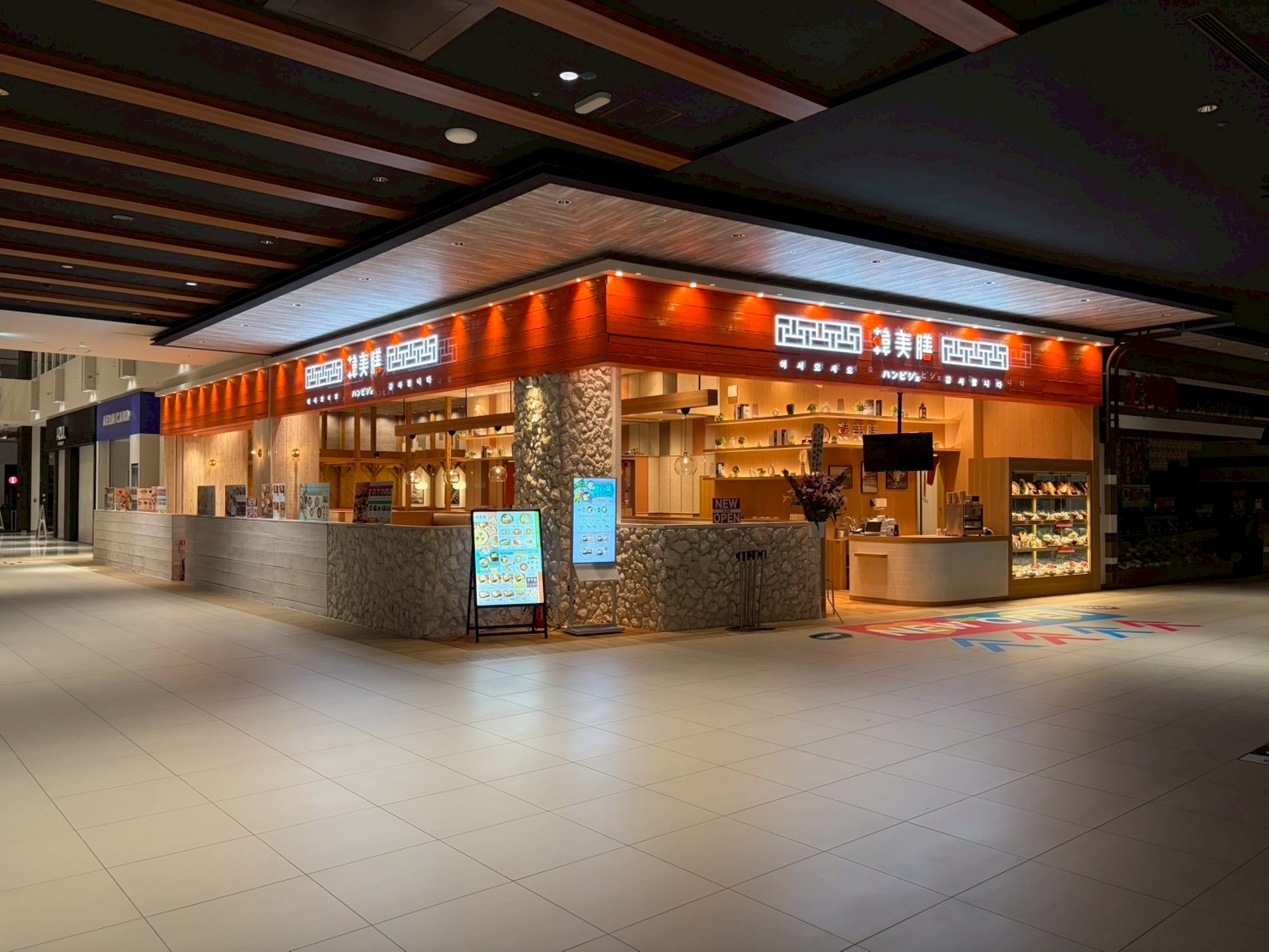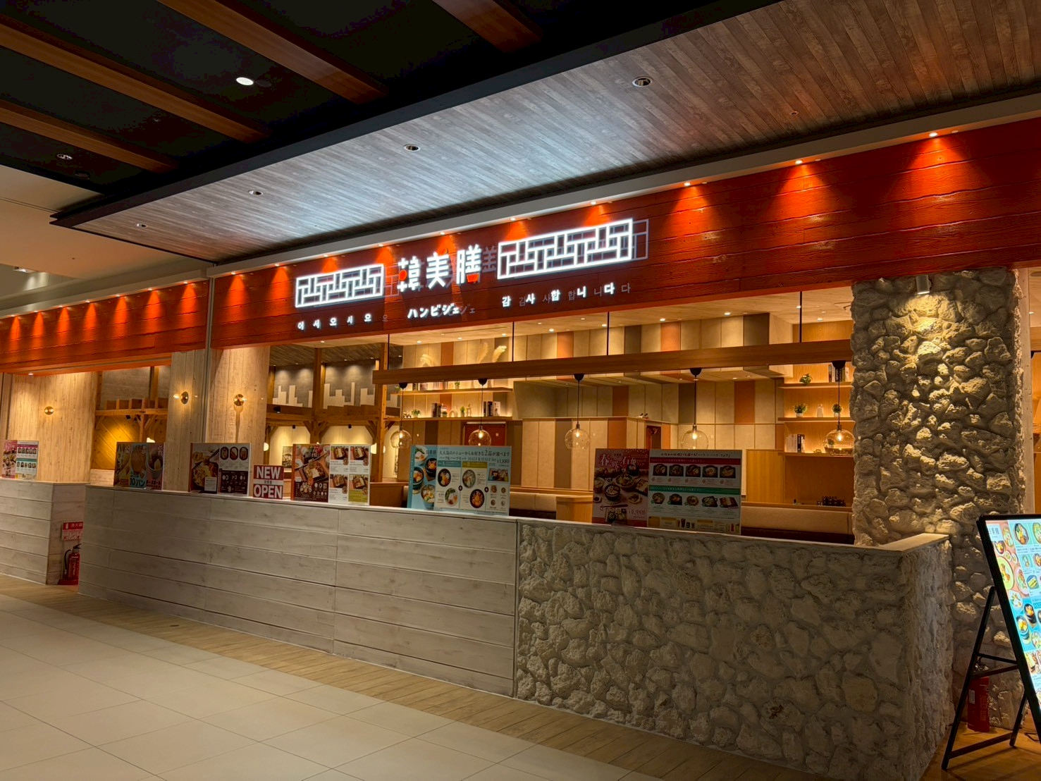 イオンモール新利府南館内の韓国料理店「韓美膳」の内装工事が完了しました。商業施設への出店に伴う什器製作・内装工事についてご興味のある方は、ぜひお気軽にご相談ください。